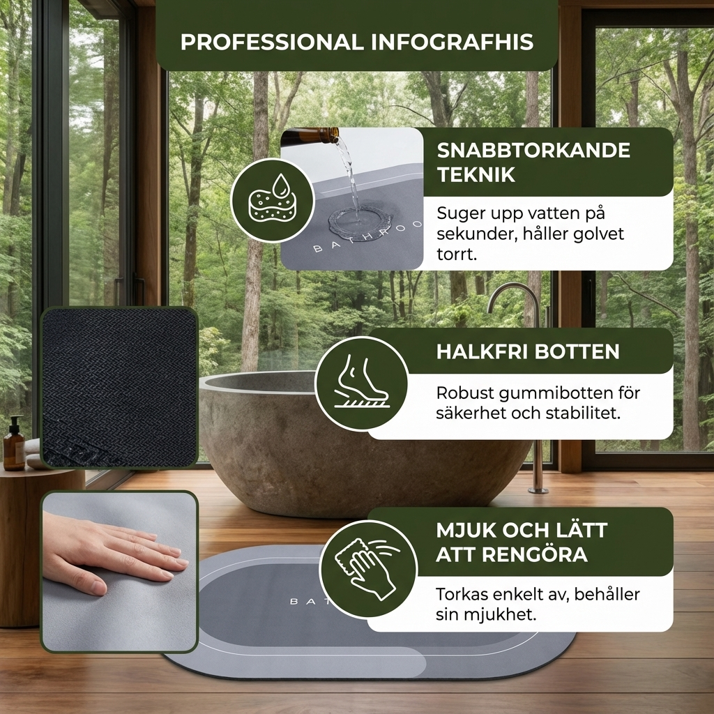 ✔ Snabbtorkande yta som absorberar vatten direkt